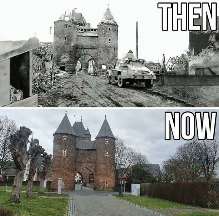 What unbelievable devastation it was in 1945. These comparison photos are giving us anxiety and chills. War is never a solution.