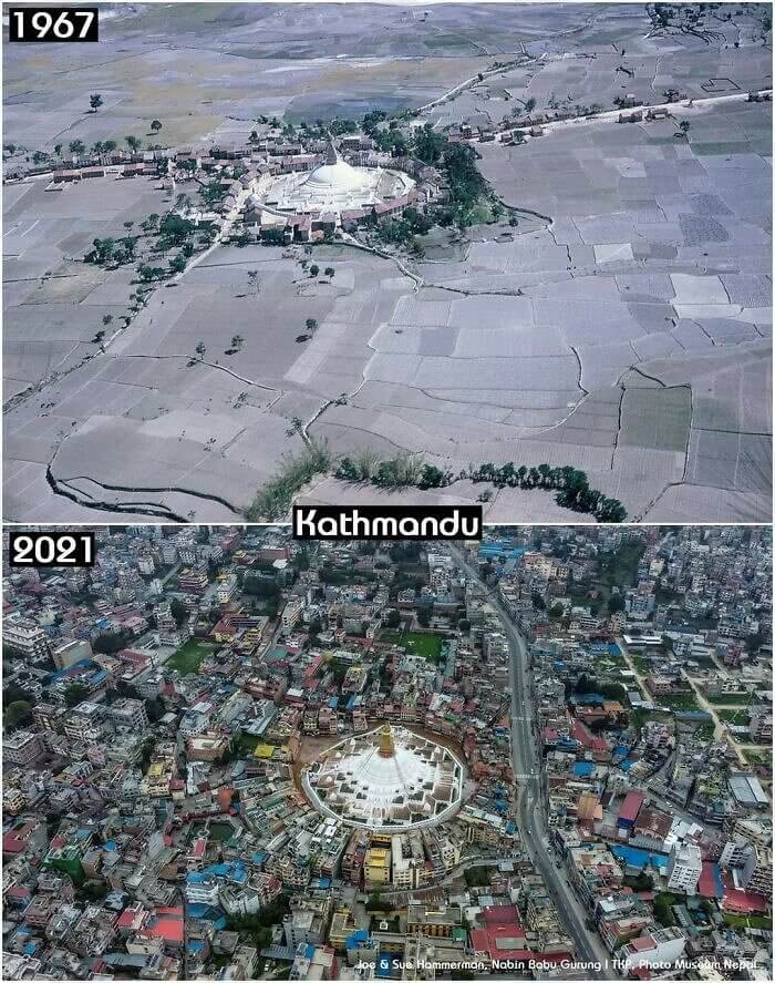Although it is an amazing amount of construction in just 50 years, why is it making us feel sad? Maybe seeing nature being replaced by a concrete jungle isn't so fascinating.